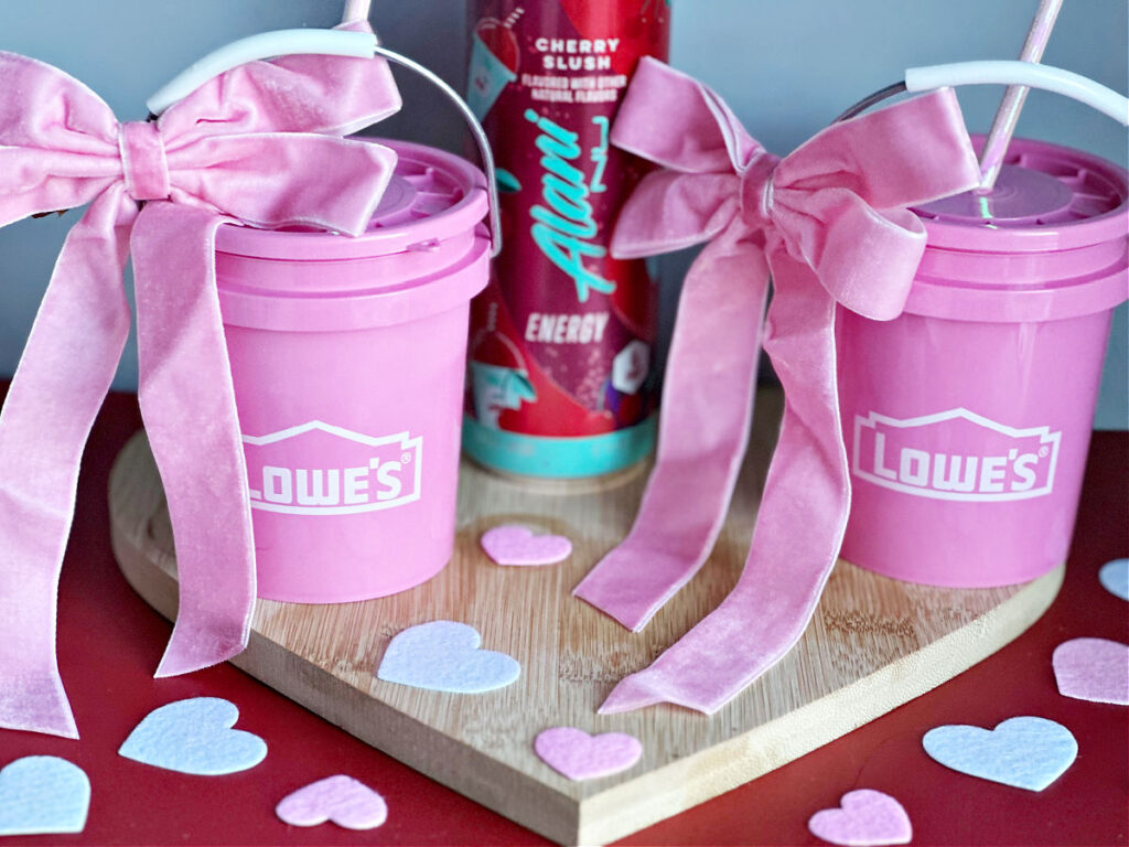 Lowe’s mini buckets are back and better than ever!! Just in time for Valentine’s Day, they’re available in the cutest pink color and they come with a lid!